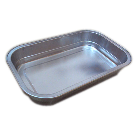 This flight dining box features rectangular aluminum construction with smooth finish. The high-quality dining box is microwave safe. It comes with a matching lid with rolled edges.