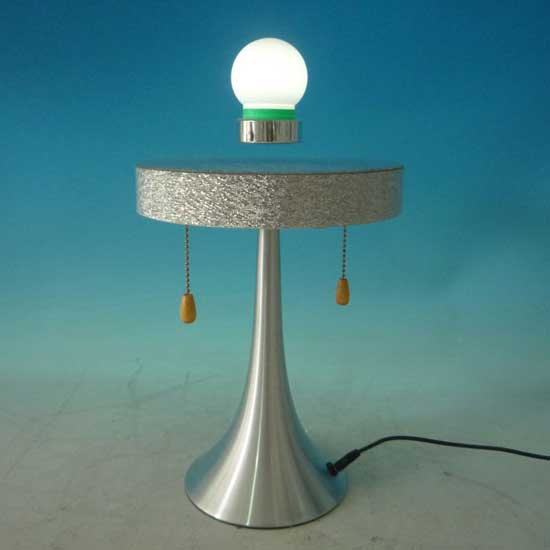 This decorative lamp features a seemingly impossible floating structure. The globular light bulb floats over the modern base table. This playful, extraordinary lamp is a fun and mysterious addition to your home.
