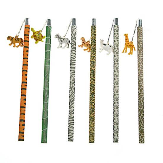 These are flocked animal pencils with flocked animal head danglers. Each of the pencils has an animal fur pattern on the whole body with the corresponding animal head as the dangler.