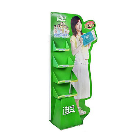 This floor display stand comes with 4 shelves for showcasing your unique merchandise. It is made of quality cardboard to boast good sturdiness. The large full-color print is incredibly eye-catching.