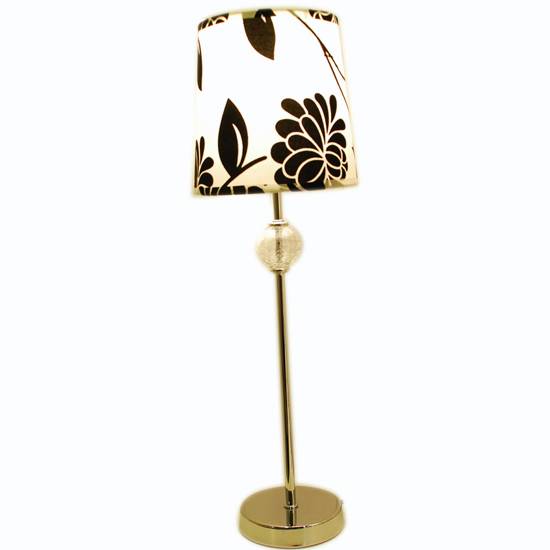The floor lamp features an elegant fabric lampshade and a glass globe decoration on the stem with an elegant touch. The chrome-finish metal stem and base add a stylish appeal. This floor lamp will complement your home decor in a delightful way.