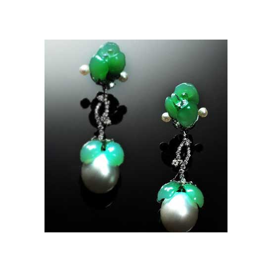 This pair of breathtaking earrings features jade-like floral settings and round lustrous pearls. With the green stones and clean white pearls, this pair of dainty earrings shines in different shades and textures. These earrings light up your look with the brilliance never seen before.