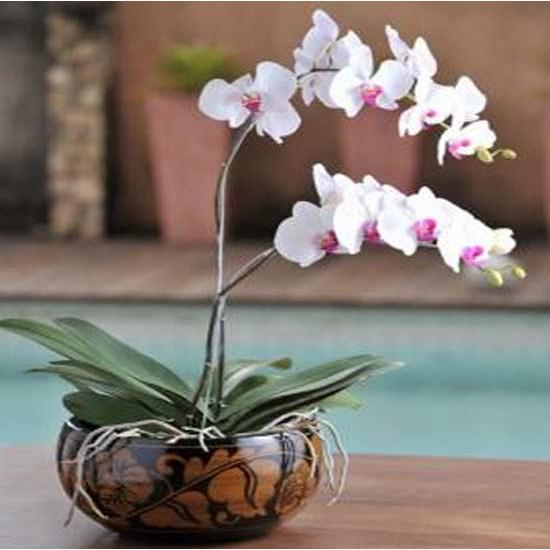 Patterned with flowers, the showcased pot is a beautiful addition to any home decor. It comes with a shallow and bowl-shaped design. The pot is suitable for different types of flowers and plants.