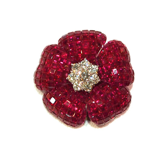 The ravishing brooch flaunts a floral design meticulously sculpted with top-grade 18K gold. The sparkles of this striking art piece are simply stunning and irresistible. This graceful brooch offers a perfect way to add glamor to any day or evening ensemble.