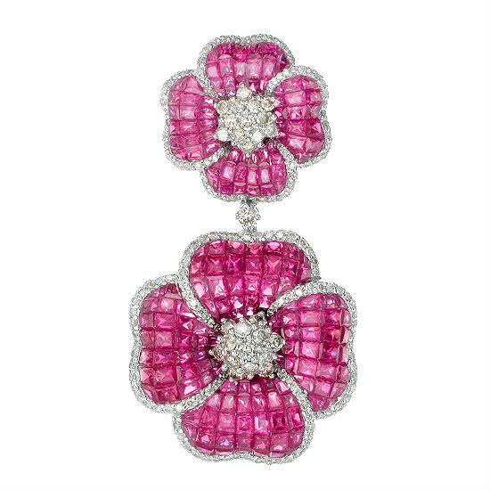 - Handmade pendant diamond earrings featuring 2 delicate flowers.