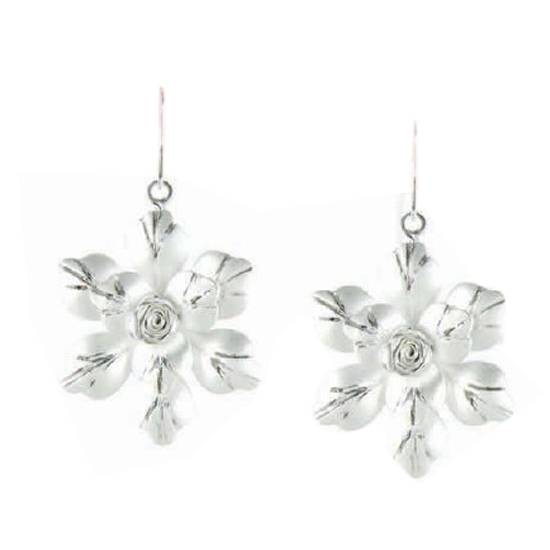 Shown here is a pair of attractive earrings in a graceful silvery sheen. This flower-shaped earrings feature an alluring matt finish on the flower petals. Wear these earrings for a unique touch of style
