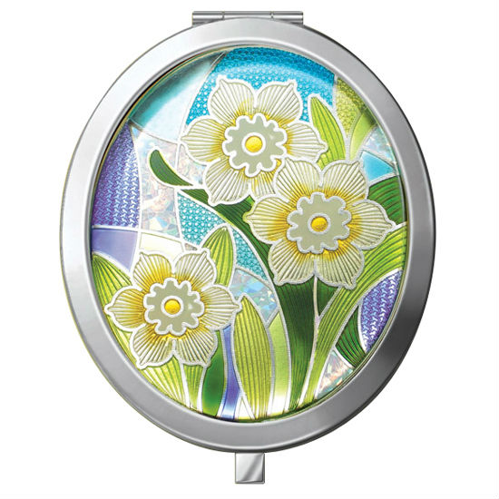Oval shape. Colored pattern (flowers) with epoxy coating.