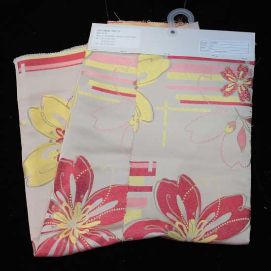 With beautiful flowery patterns, the featured piece of fabric looks feminine and colorful. It comes with the pattern of a five-petal flower and some stripes. With the presence of polyester, the fabric is not easy to get wrinkled.