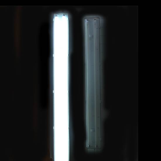 Presented is a double tube fluorescent lamp holder. It is water-proof, dust-proof and explosion-proof. It is in white and fit well with multiple contexts.