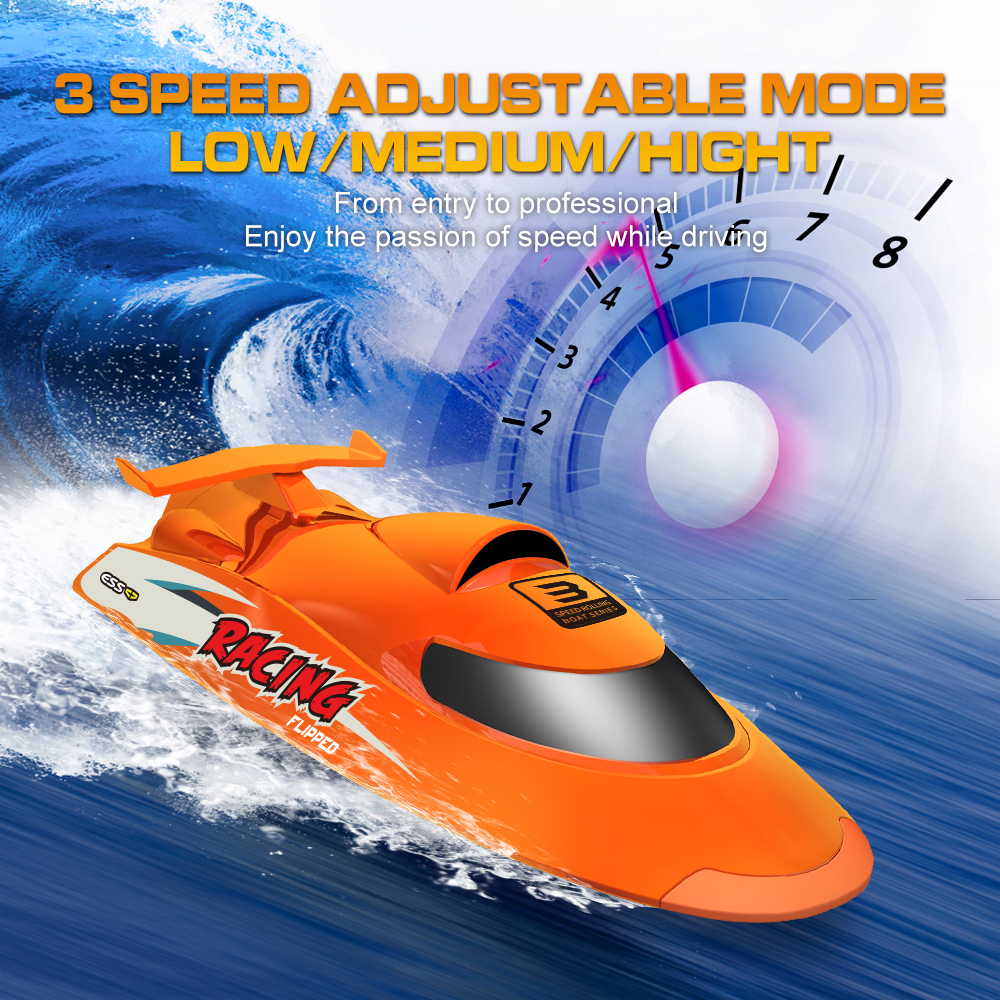 When the boat is low in battery, the red indicator light flashes continuously, be sure to change the battery of the jet boat on the shore as soon as possible,rematch frequency to use it again.