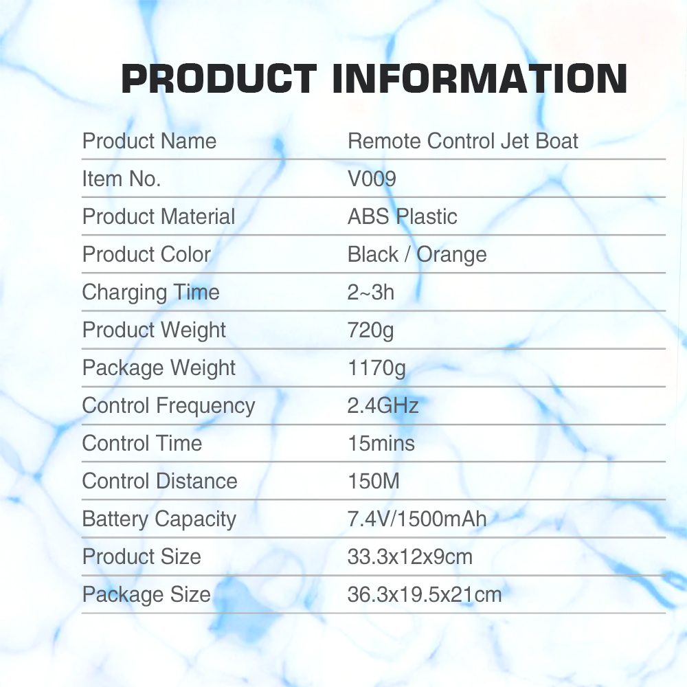 Using turbine water jet as the power to drive the boat forward, the power is stable and fast 5. Low battery warning
