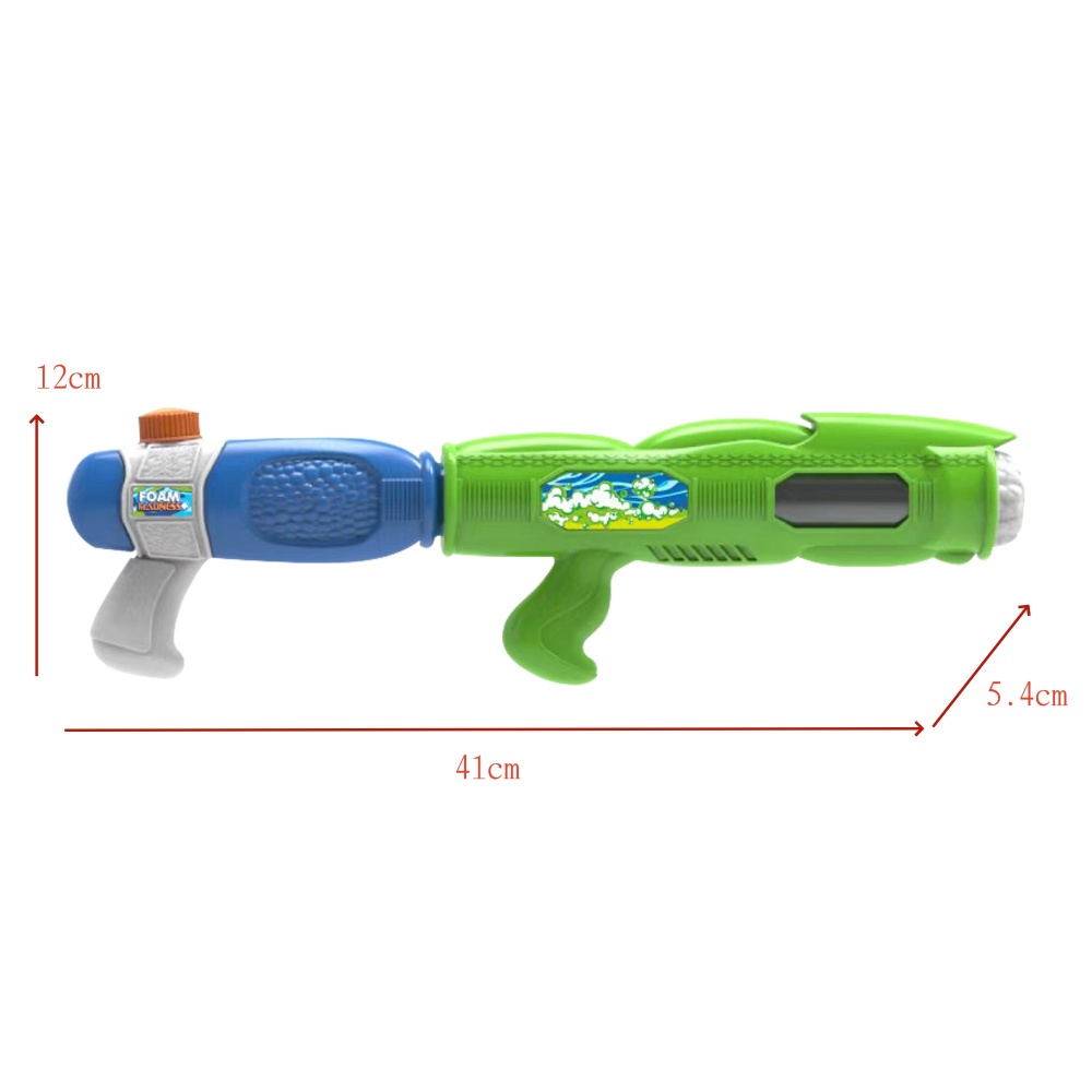 The two-handed foam gun toy is a safe, fun and versatile children's toy suitable for use in outdoor activities, which can bring joy and interactive fun to children.The dual handlebars provide better control over the direction and stability of the injection and are designed to be safe, fun and suitable for outdoor activities. Smooth edges, easy handshakes, with three bags of bubble water, let children play safely and have fun. Foam toy guns can be used as props in team games to promote communication and cooperation between children.