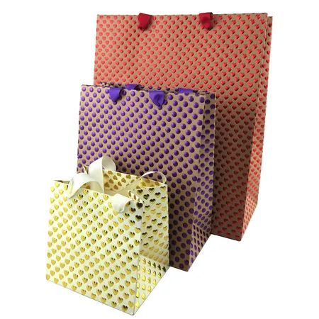 The surface of the paper bag is exquisitely adorned with uniformly arranged embossed circular or heart-shaped patterns. These patterns, combined with the gold stamping effect, complement each other perfectly, creating a unique visual charm that makes the paper bag truly eye-catching.