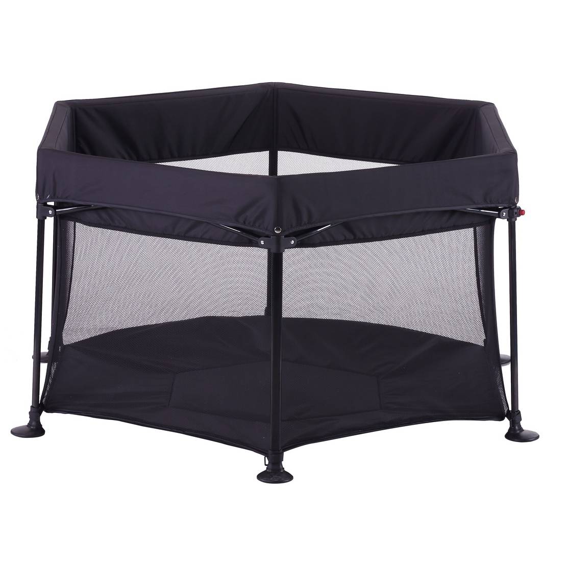 Set up a safe and comfortable area for babies to play in with this portable playpen. It has a sturdy frame in hexagonal shape and has a solid colored base with mesh panels. This portable playpen has a foldable structure and comes with a bag for easy carrying.