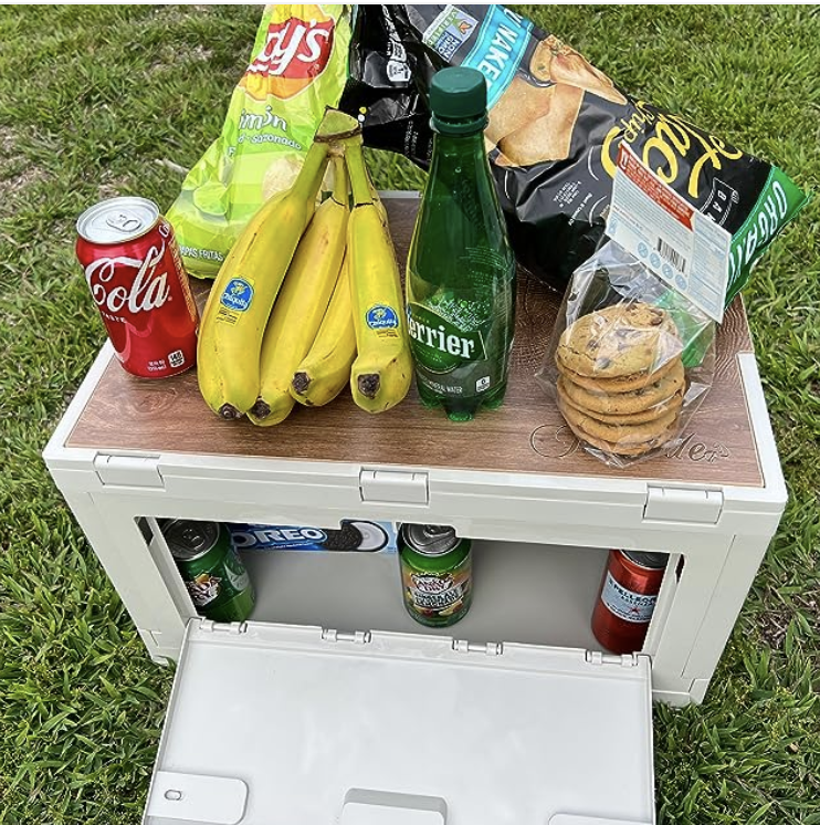 It comes with a table board, it can be used as a storage box and a folding table.