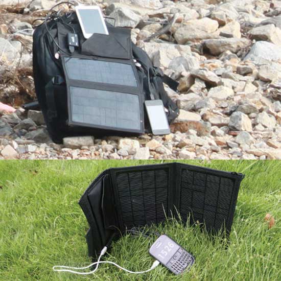 This foldable solar panel is designed to charge assorted USB devices. The versatile solar panel is specially designed with small pockets for keeping devices and cell chargers. The durable loops boast a lifespan of over 5 years.