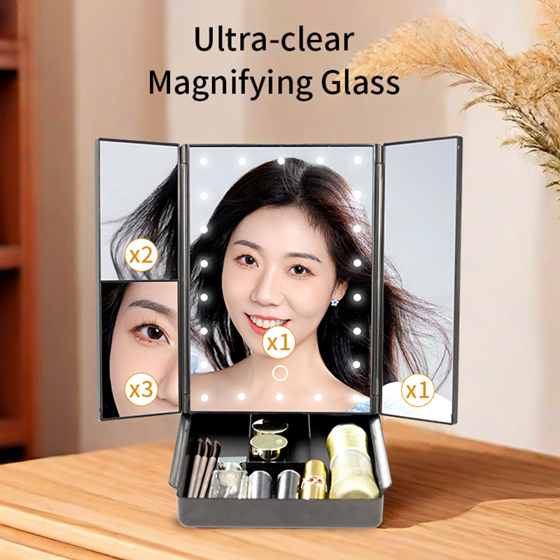 Tri-fold Design - 180° multi-angle adjustment for a complete, obstruction-free view; easily check your side profile and fine details