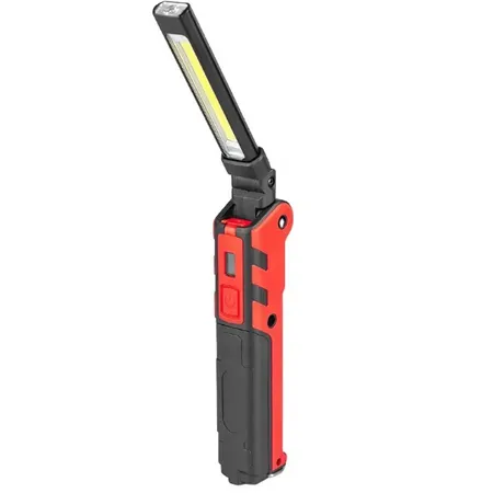 5w COB (side), 3W led (top) 3.7v 2000mah Size:150x38x31mm (folding) With dimmer switch With magnet and hook, Net weight 163g