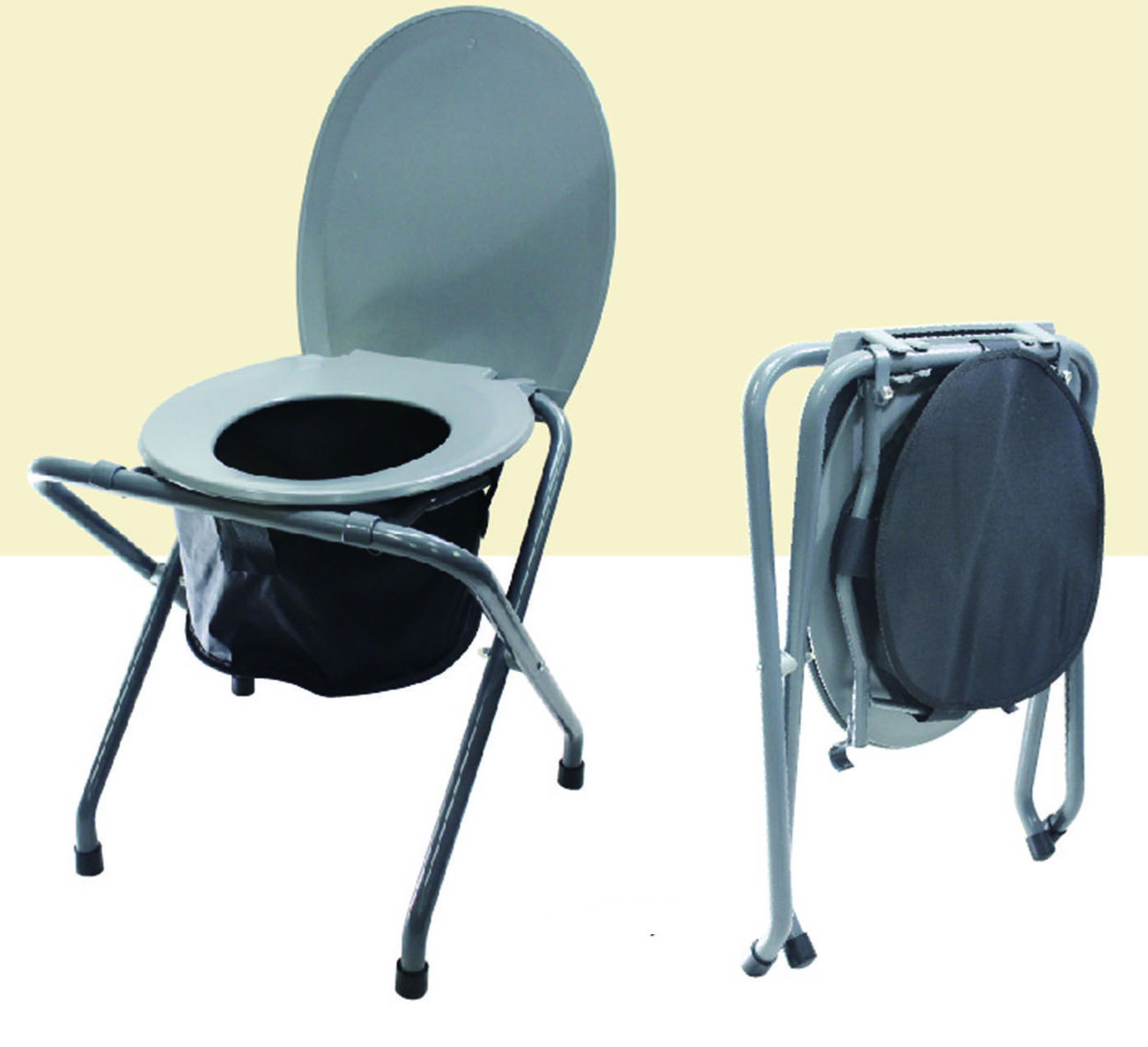 Powder coated steel tube and PP commode make it easy to carry and for storage.