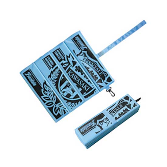 This is a stadium cushion with a new and folding design. It comes with a carabiner for attaching to a rod easily. It is decorated with a stylish print for added attractiveness.