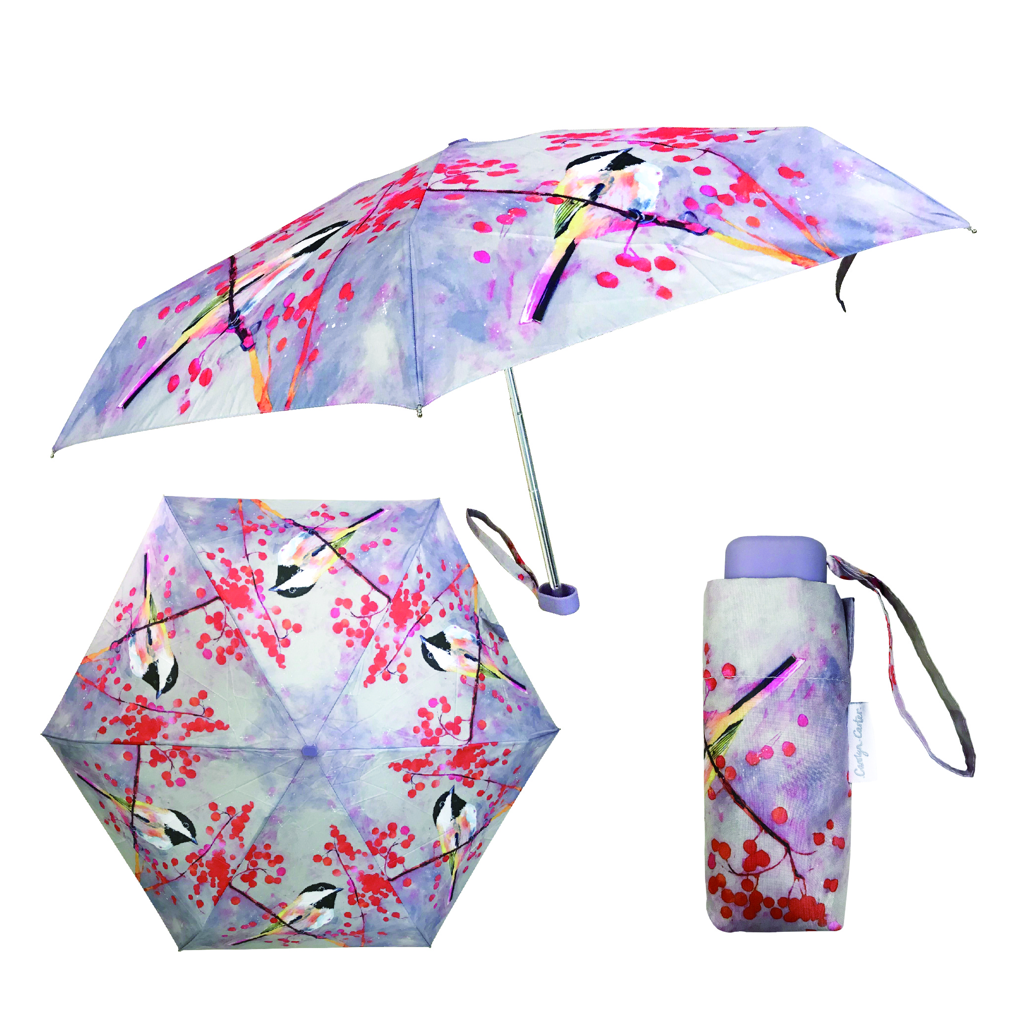 Protect yourself from unexpected rain with this compact and portable umbrella. It has flowers pattern panels and 5-fold structure for space-saving storage. This foldable umbrella has a plastic handle with a wrist strap for easy holding and comes with a pouch for convenient carrying.