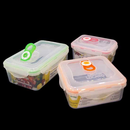 This food container comes in a translucent square shape with orange details. The food box is designed with four snap-on clips for air-tight closure. This BPA-free food container is suitable for office workers who bring lunch boxes.