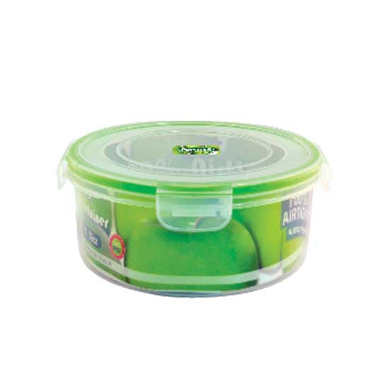This is a food container that is round in shape. It features a clear body which is made of quality plastic material. This robust box is ideal for household use.