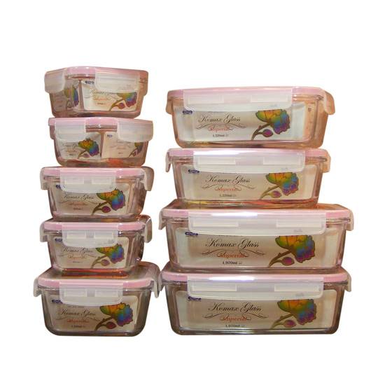 These food containers are made of glass. They feature seal tight lids with slot and rubber gasket around that keep 100% airtight and watertight. They help to organize your refrigerator or cupboard tidily and easily.