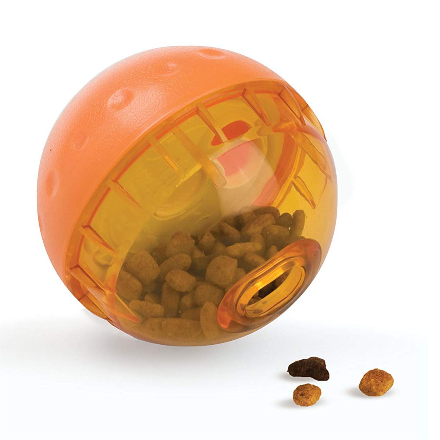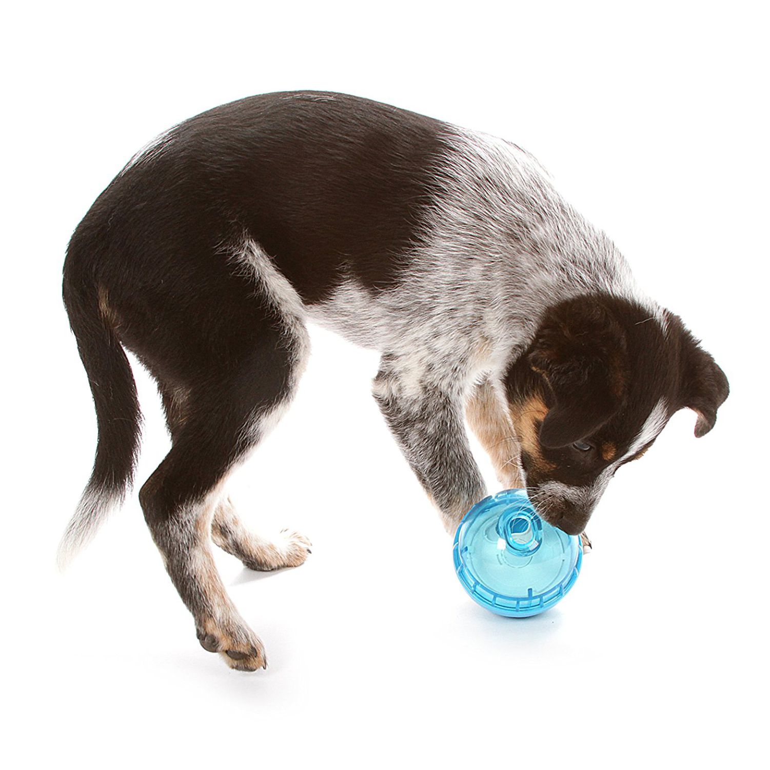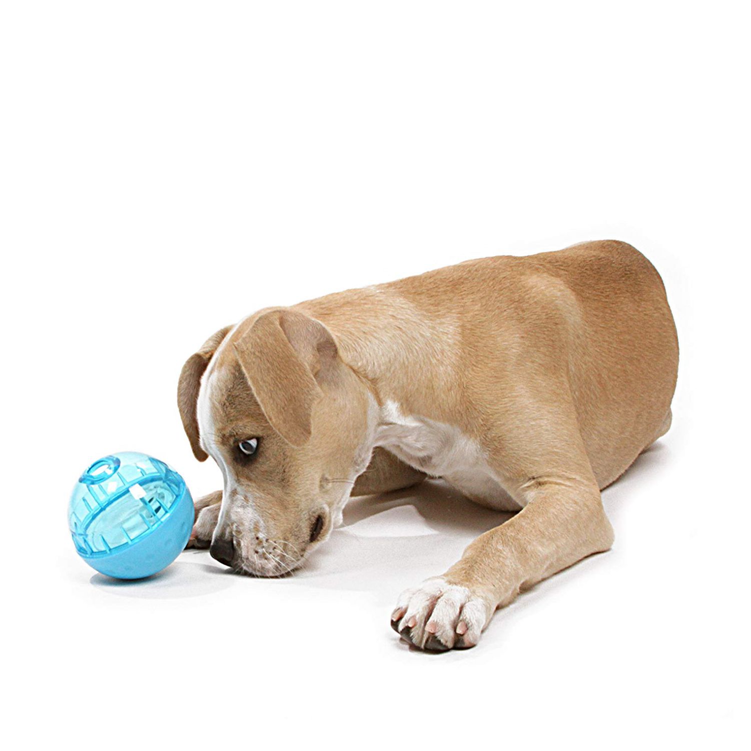 - As your dog plays and the rolls the ball, treats will fall out to reward them for being active