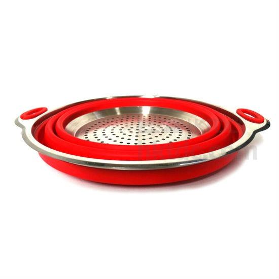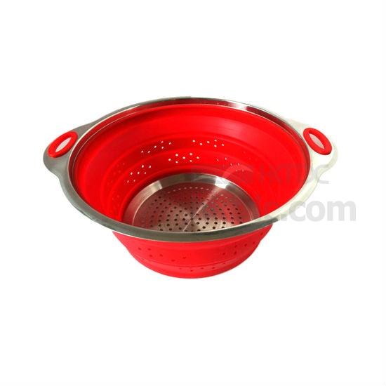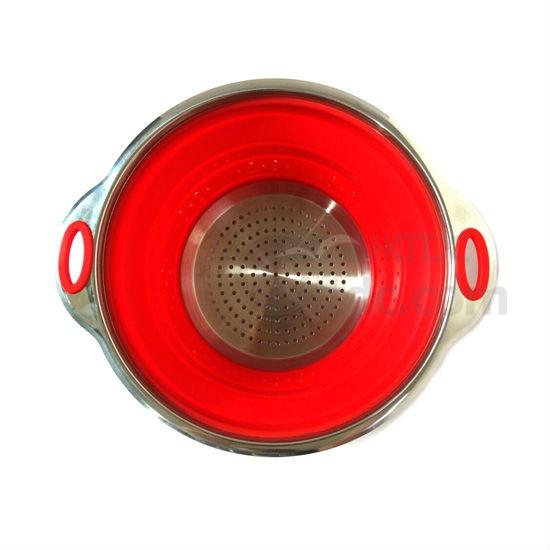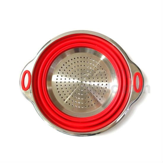 Food Grade Silicone + 304 Stainless Steel Collapsible Colander