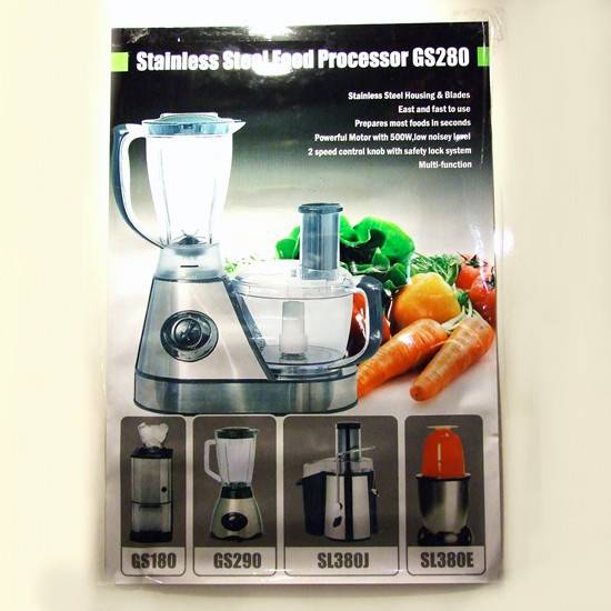 This is a food processor characterized by its stainless steel housing and blades. With its 500W powerful motor, it can prepare most food in seconds in a low noise level. It has professional quality for home use. The mixing vessel has 1,500ml capacity with scale and the chopper bowl has 1,400ml capacity with scale.