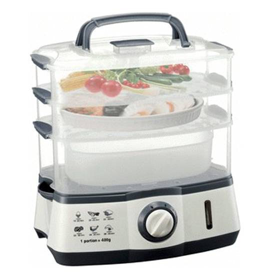 This product is an electric food steamer, an essential for any household kitchen. Its stack on stack design allows up to three different trays of food to be simultaneously heated without delay.
