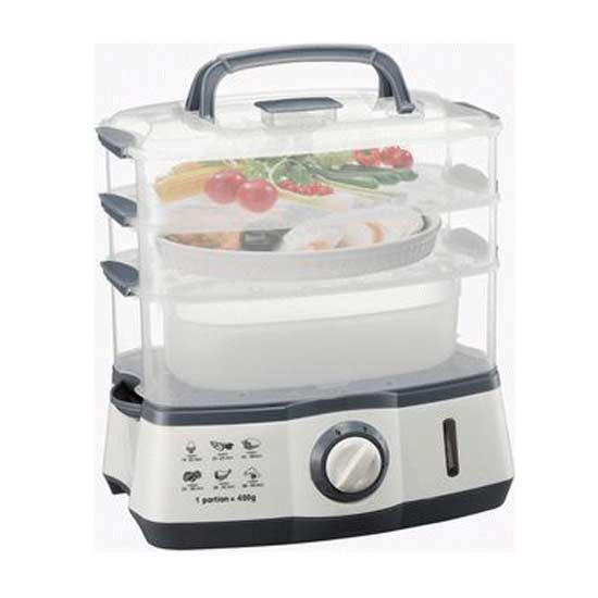 This food steamer comes with a stackable design with a transparent lid. The microwave-safe and fridge-safe steamer promises maximum convenience. The auto cut-off system and light indicator enhance user-friendliness.