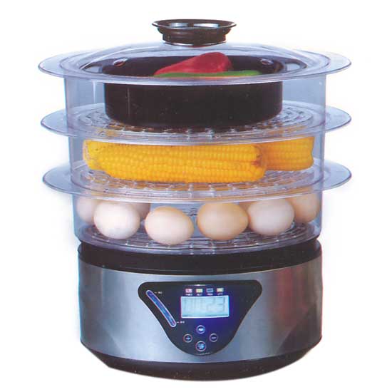 The food steamer offers an easy and convenient way of cooking for people with a busy lifestyle. The three-tier design lets you prepare three dishes simultaneously, while the transparent construction offers a clear view of the steaming process. This food steamer makes an essential kitchen appliance for a healthy meal.