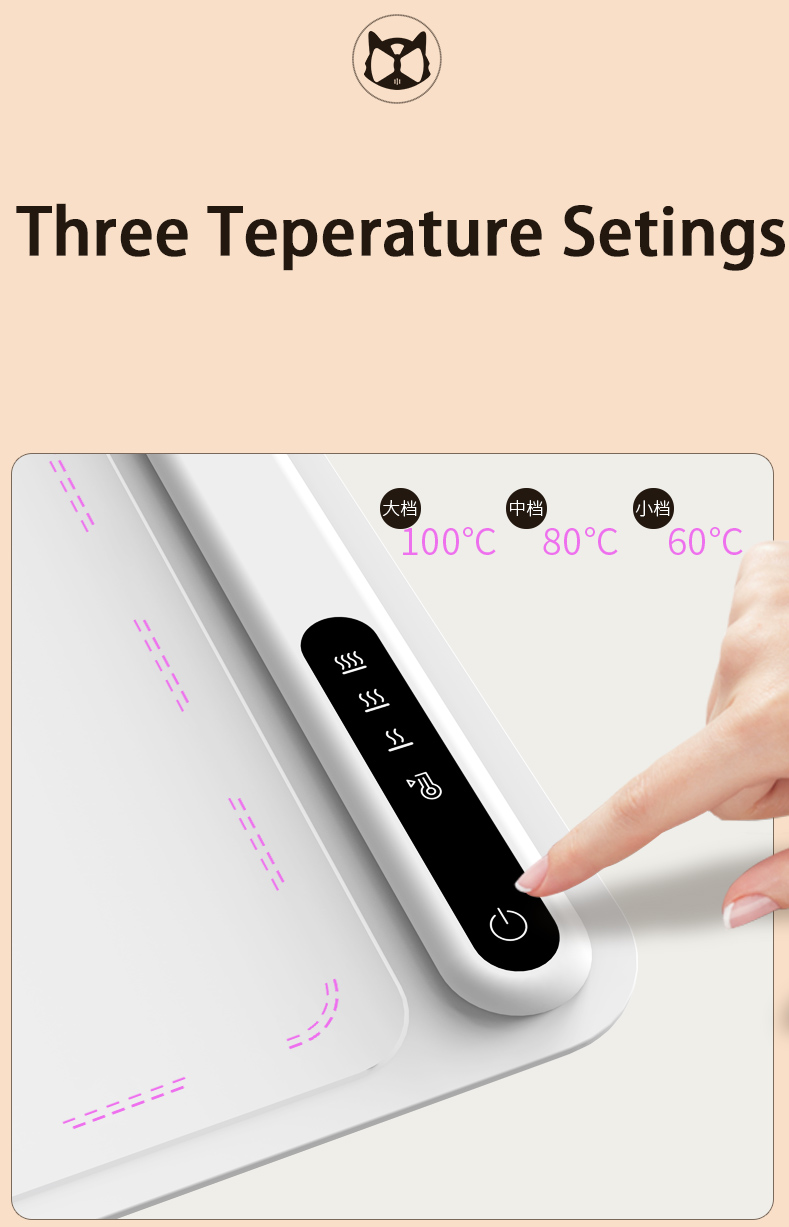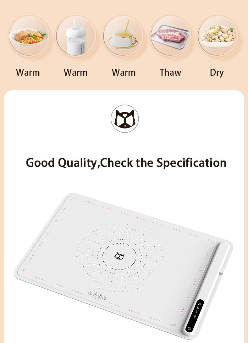 * Pad setting rectangular dish position can be placed arbitrarily, automatic heating after the selected certern temperature, all LED lights off and stop heating enter the standby state automatically if the key does not operate within 2 hours