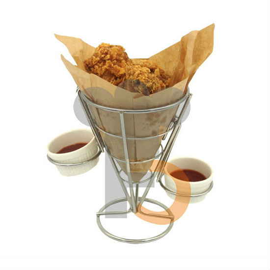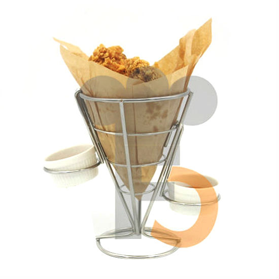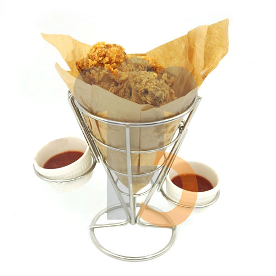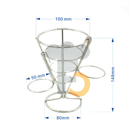 Food-grade Stainless Steel French Fries Holder with Two Hook and Two Ceramic Cup