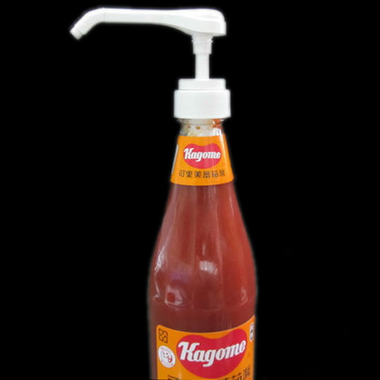 This dispenser pump is designed for use with food packaging. It allows users to serve themselves easily. The long nozzle gives users much convenience.