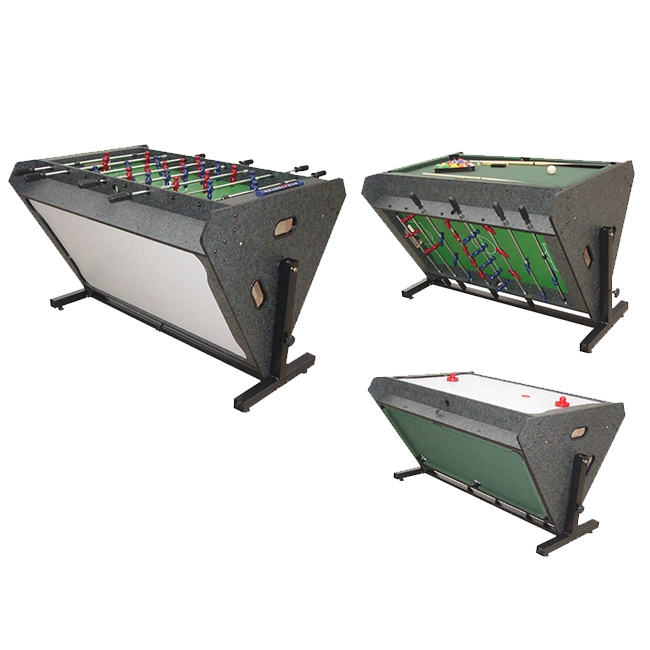 Switch between foosball (8 rods, 2 balls), pool (felt surface, cues, balls), and air hockey (PVC surface, paddles, puck) – endless variety in one compact unit.