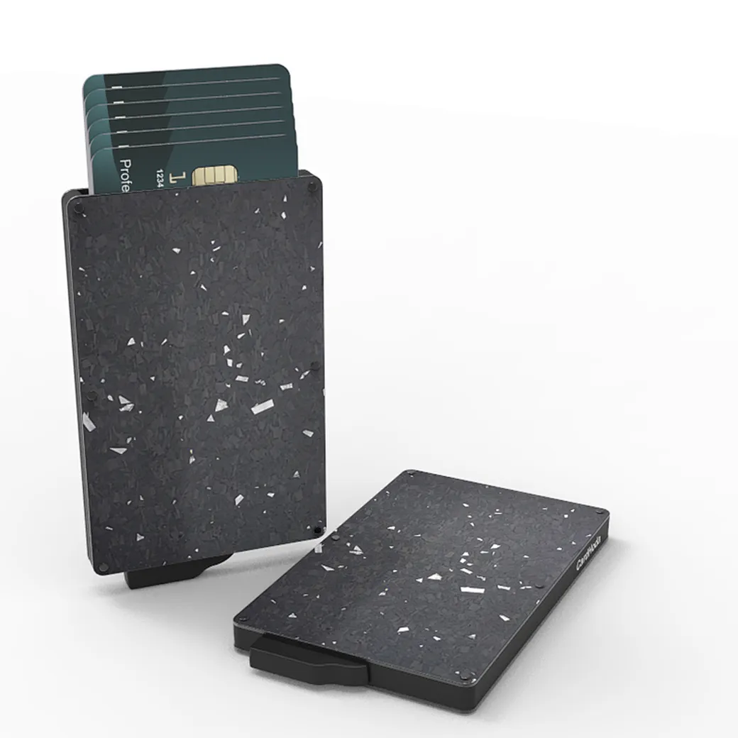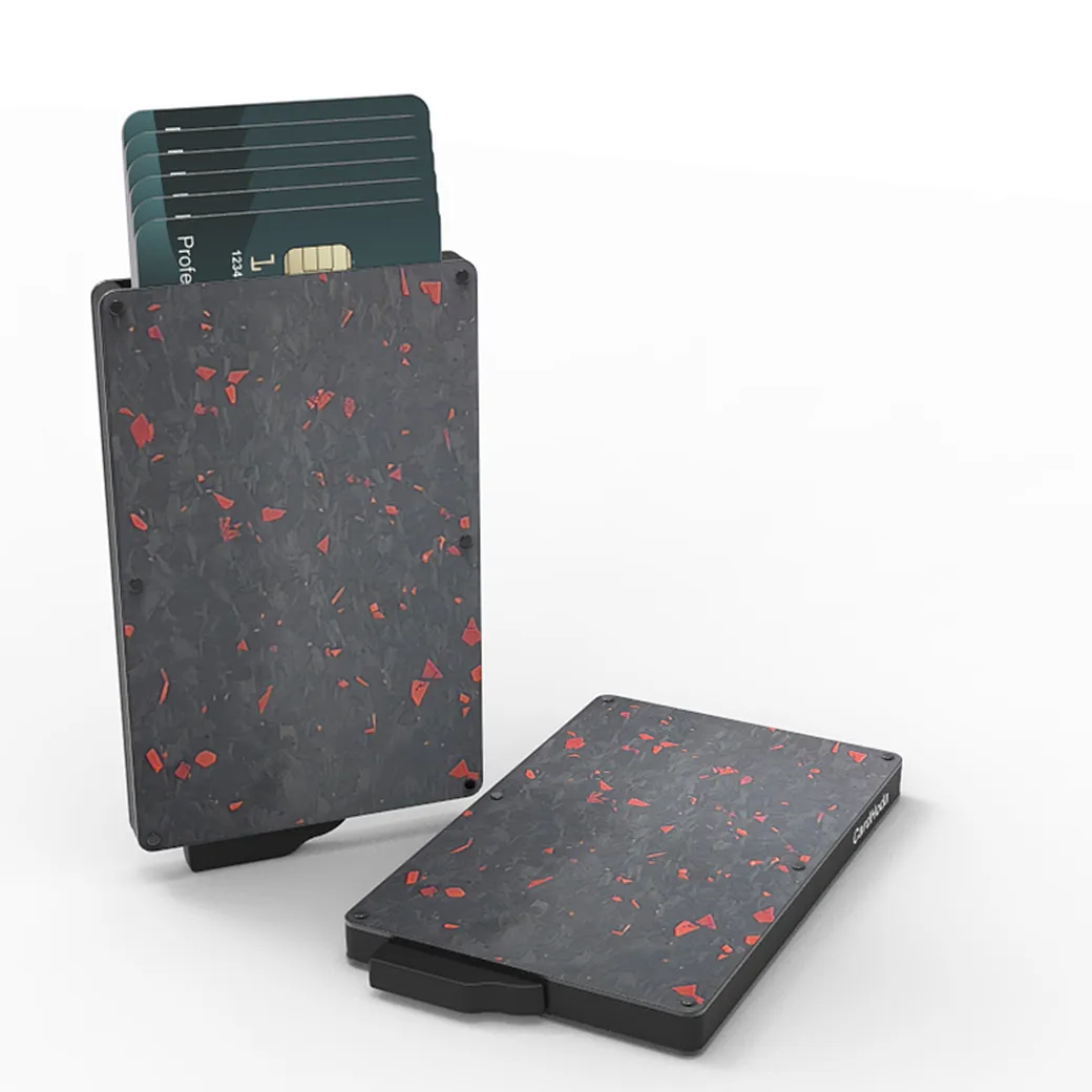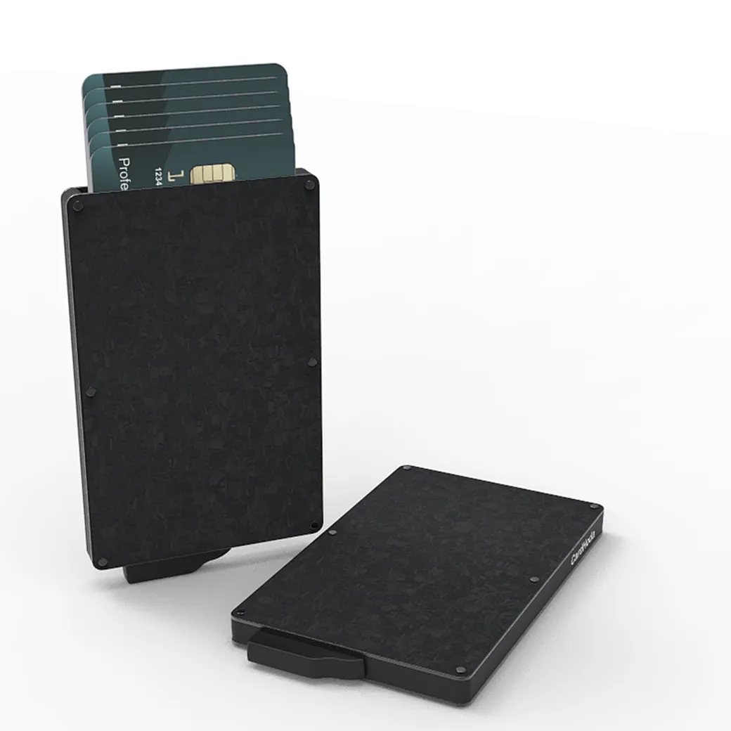 The Card Holders is a minimalist, RFID-blocking wallet. The main cardholder is made of a sturdy aluminum shell to prevent IDs and credit cards from being squeezed and uses advanced aluminum technology to protect credit cards from unnecessary wireless communications; A build-in magnet closure keeps the cards and money hold in the wallet not to drop, its compact body is easier to carry and put in any pocket.