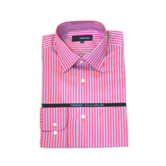 This is a pinkish shirt designed for men. It comes with a turn-down collar and button-up front closure. The 100% cotton construction allows gratifying wearing comfort.