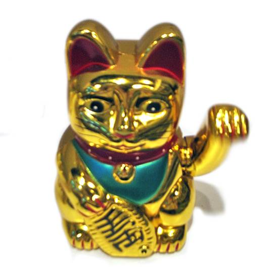 This product is a cat that summons fortune. It is traditionally placed at the doorstep of houses. The cat's left paw bounces to and fro, beckoning good fortune to the household it guards.