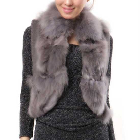 This luxurious vest in made from genuine fox fur in a gray color. The authentic fox fur vest boasts a fluffy, smooth and soft texture. It makes a wonderful addition to your winter wardrobe.