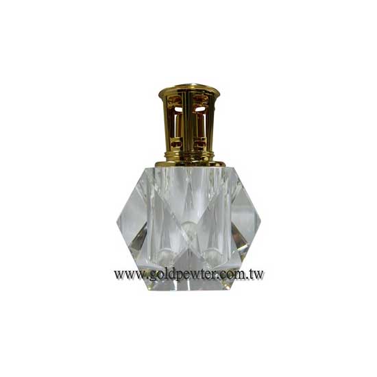 This decorative fragrance lamp radiates strong elegance. The crystal fragrance container comes in an exquisite hexagonal shape. The aroma burner at the top comes with fine details. It makes a splendid decoration.