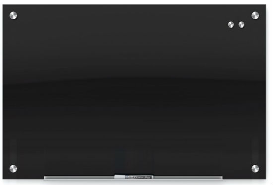 Frameless board design blends seamlessly into any environment; black colored glass board surface clearly displays white and neon color dry-erase ink; non-absorbent glass board is easy to keep clean with whiteboard cleaning supplies