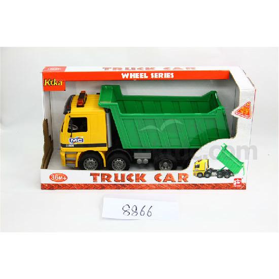 The displayed toy truck comes in a realistic design and has a tilting bed for unloading. It has eight free wheels for smoothing moving and is great for playing indoors and outdoors. This toy truck flaunts a durable construction and is an excellent gift for kids.