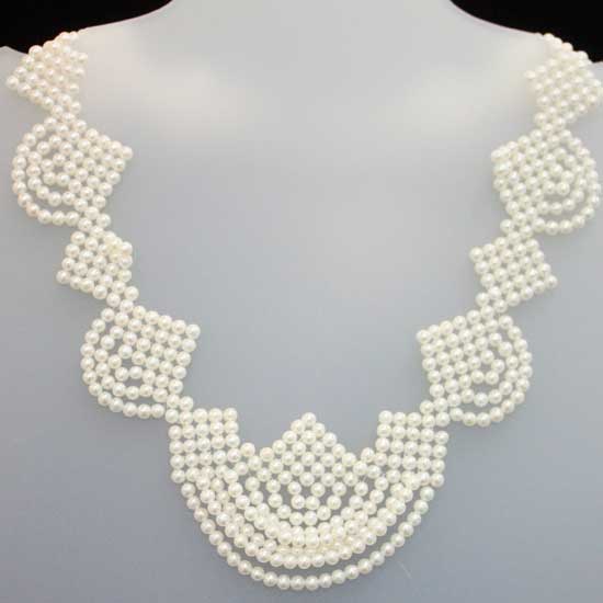 The featured necklace boasts a fashionable design to please ladies’ eyes. The necklace comes in a unique shape set with tiny fresh water pearls. The pure white pearls look gorgeous with natural luster.