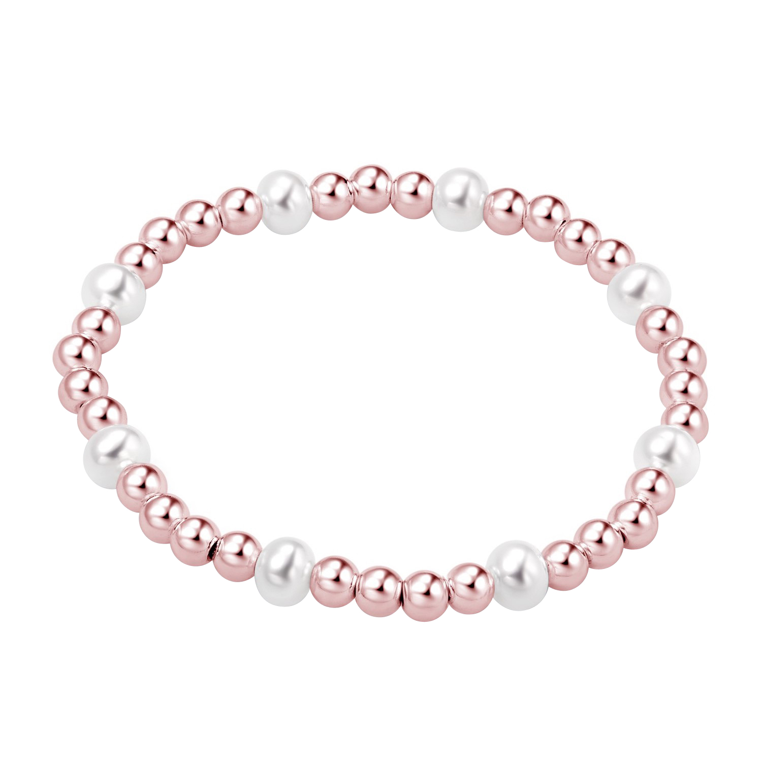 Stretch Bracelet with 6-7mm White Potato Freshwater Pearl and Rose Color Hematite