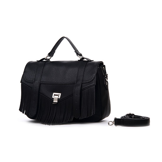 This stylish satchel bag is designed in timeless black. It is made of quality materials for a long service life. This fashionable satchel bag comes with delicate fringes for an eye-catching look.