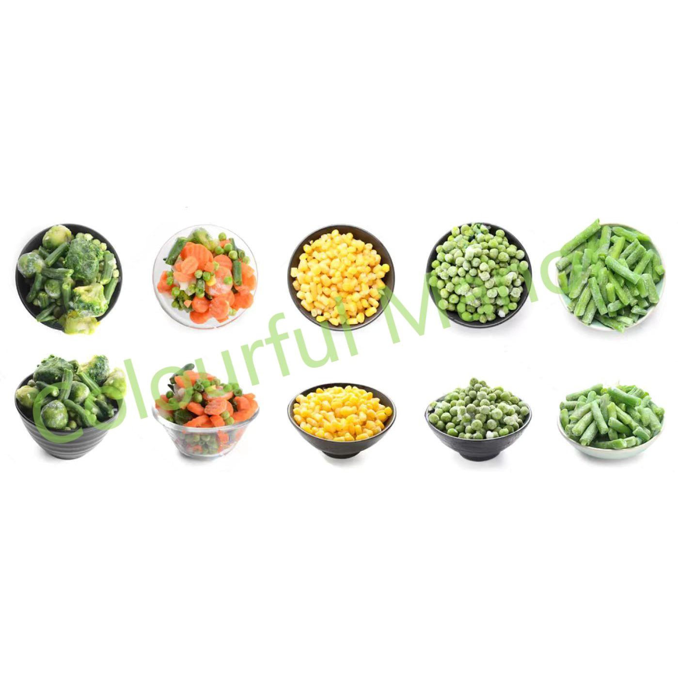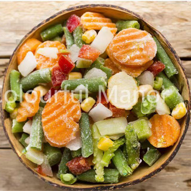 The frozen vegetable mix is a pre-packaged combination of various vegetables that have been washed, chopped, and frozen for convenience and longer shelf life. This blend of vegetables provides a quick and easy way to add nutrients, color, and flavor to a variety of dishes. It is ideal for busy people who want to maintain a healthy diet without spending too much time on meal preparation.