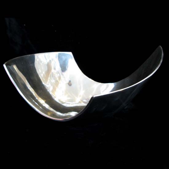 The fruit bowl shows a beautiful curve. The robust aluminum construction offers lasting durability. Decorate your dining table with this handmade fruit bowl.